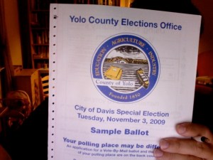 Well, however you feel about the Wildhorse Ranch vote in Davis, this whole election just seems absurd. A whole election just to vote on this one thing? And do they really need a multi-page color sample ballot? So if I could, I would vote to require these “special” elections about rezoning to only happen if there already was another important election going on. Even if the pro-Ranch crown pays for the election, it just seems like a waste …
