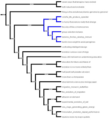 It’s has some juicy evolution posts discussed and (perhaps) best of all has a “phylogenetic” tree based on the postings. I recommend everyone check it out …