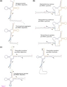 I was woefully unaware of some of the tRNA shenanigans going on in microbes until reading this paper: Genome Biology | Abstract | Discovery of permuted and recently split transfer RNAs in Archaea from Patricia Chan, Aaron Cozen and Todd Lowe. Life is pretty weird and wacky sometimes, even in components of cells that are considered “core” parts of the machinery of life. Go figure. It is worth a read …