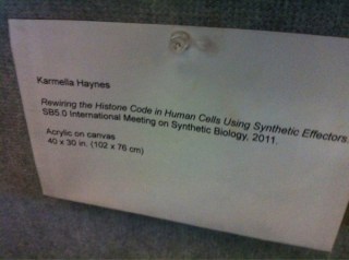 And then with a little help from Google I discovered her openwetware page: Karmella Haynes. And from that I found her art page: http://www.karmellahaynes.com/. I hope she does more hand painted posters for conferences – it certainly brightened up the poster session and made my day.