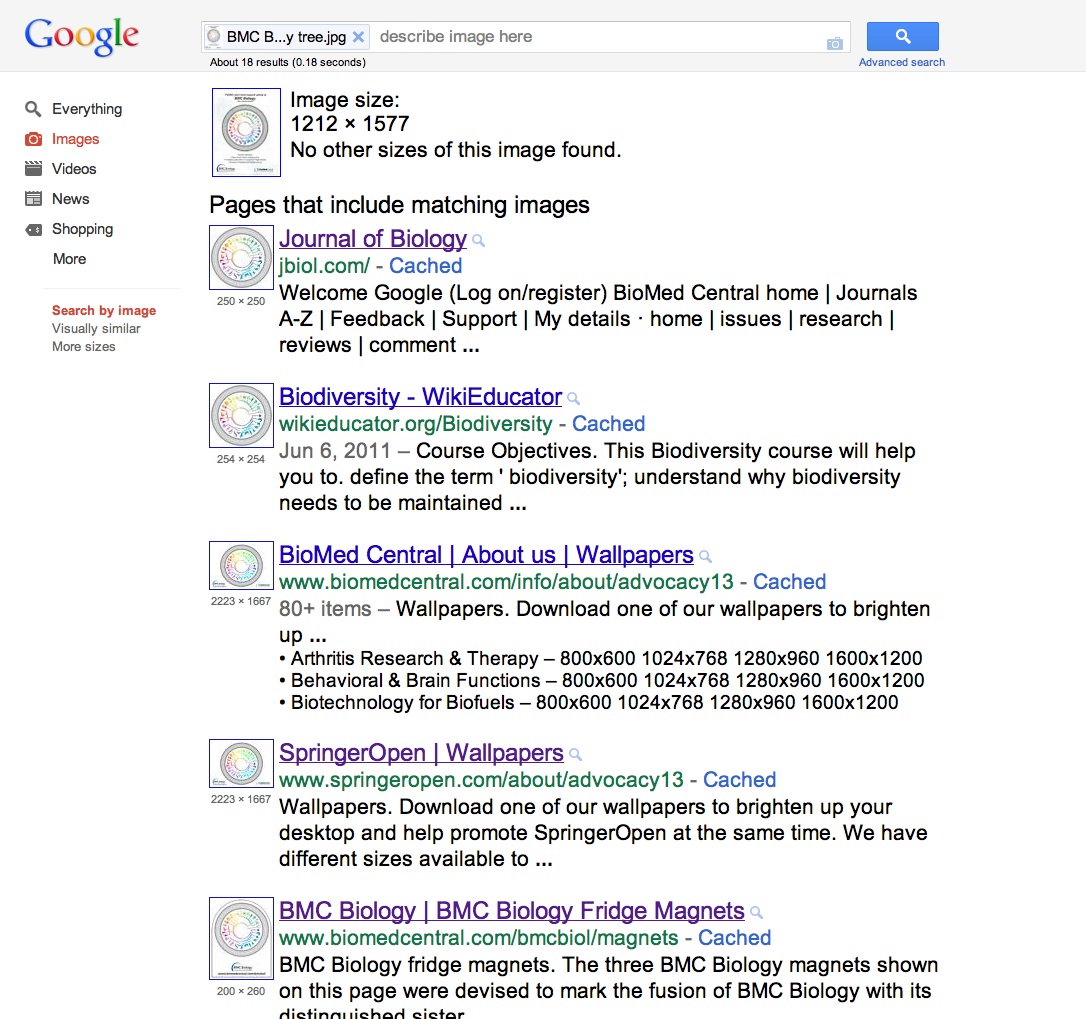 With all sorts of pages with similar images.  Pretty cool.  And after browsing a few of them I found that the page on BMC Biol. fridge magnets which they give away at conferences.  And for the one with the offending tree they say