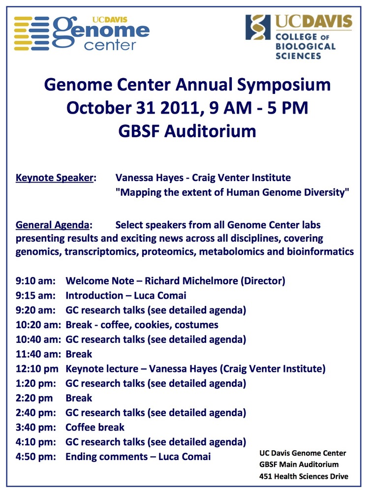 Previous Image #UCDavis Genome Center Annual Symposium featuring Vanessa Hayes from J. Craig Venter Inst. 10/31 Share this: Click to share on Bluesky (Opens in new window) Bluesky Click to share on Threads (Opens in new window) Threads Click to share on Mastodon (Opens in new window) Mastodon Click to email a link to a friend (Opens in new window) Email More Click to share on Reddit (Opens in new window) Reddit Share on Tumblr Click to share on WhatsApp (Opens in new window) WhatsApp Post Click to print (Opens in new window) Print PocketLike Loading...