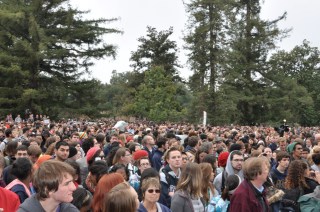 I then bumped into Keith Bradnam, from the UC Davis Genome Center. And we talked about the events of the last few days, as well as about blogging/tweeting about the events (he is a fellow postaholic). I went inside to get a drink from the Coffee House and then came back out. I took a few more pictures as the crowd started to grow: