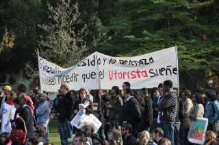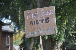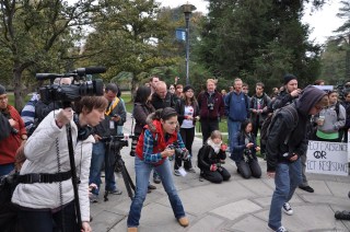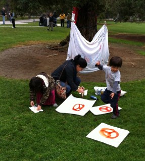 But there were a lot of people over by the Student Union (next to the quad). Most of these people were apparently from the press but at least there were people there. There were also many people starting to make signs, including a few little kids, which was also good to see. I took a bunch of pics as I wandered around: