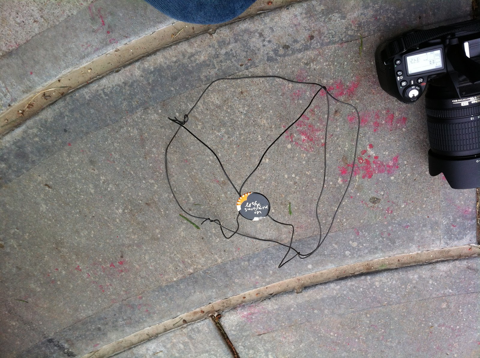 Although I had thought I would only observe things at the rally and not participate I was moved by this activity. And so I made my own “tent” too. I added the button I had been wearing that I had taken from my collection, to make a little personal statement.