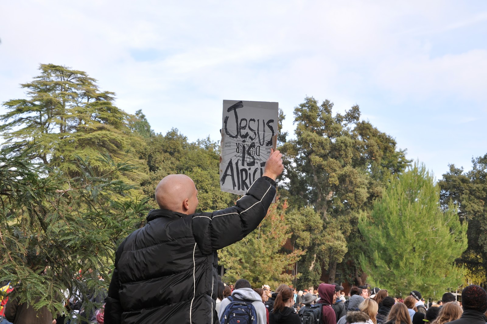 A blur. That is what this day represents. A serious blur. I got up not so early, not so late, since my kids are off school this week. And I started prepping for my day about town. At 12 noon there was to be a rally of some kind in regard to the pepper spraying incident on campus.