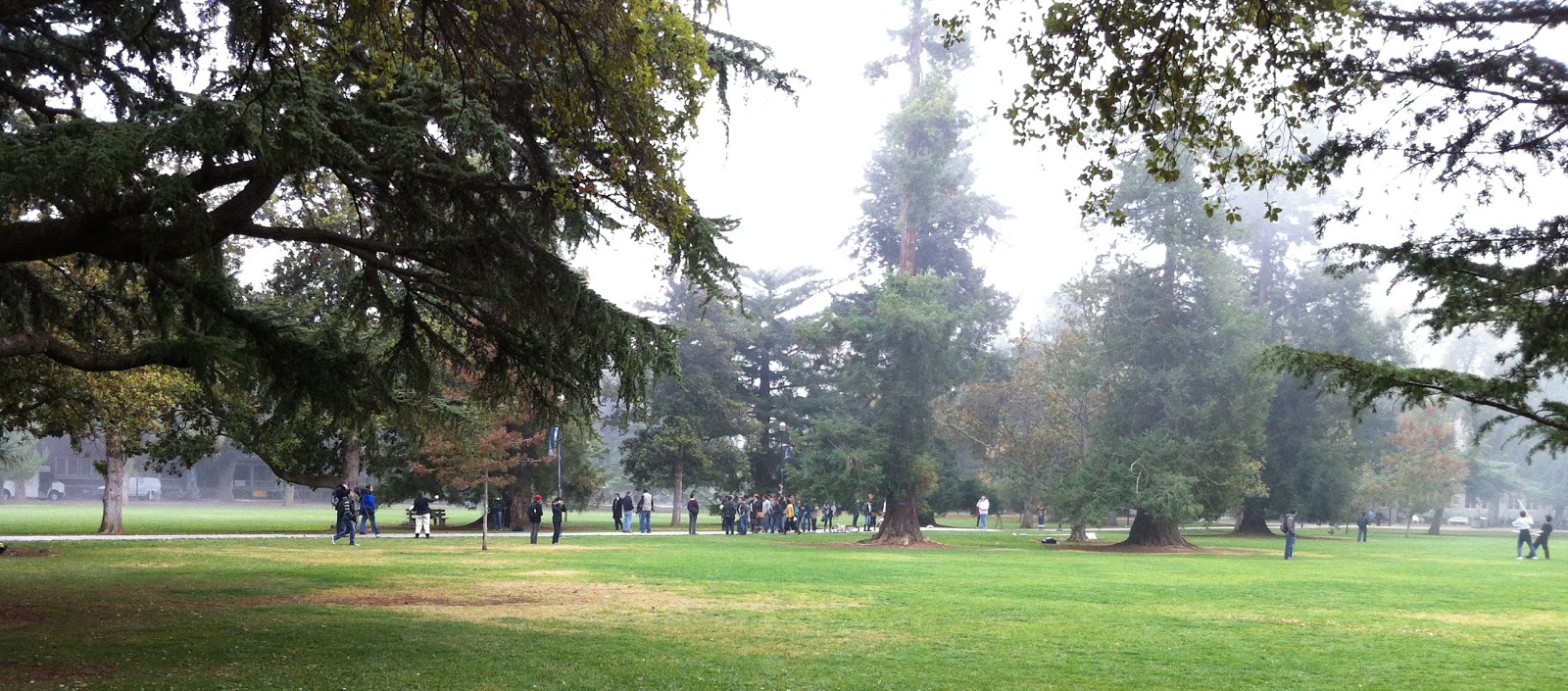 Then I packed up my bag with all sorts of blogging/tweeting/photo gear and headed to UC Davis campus. I parked my bike over by the side of the quad and headed over to see what was going on. There were a few people starting to accumulate on the quad at this point but not many: