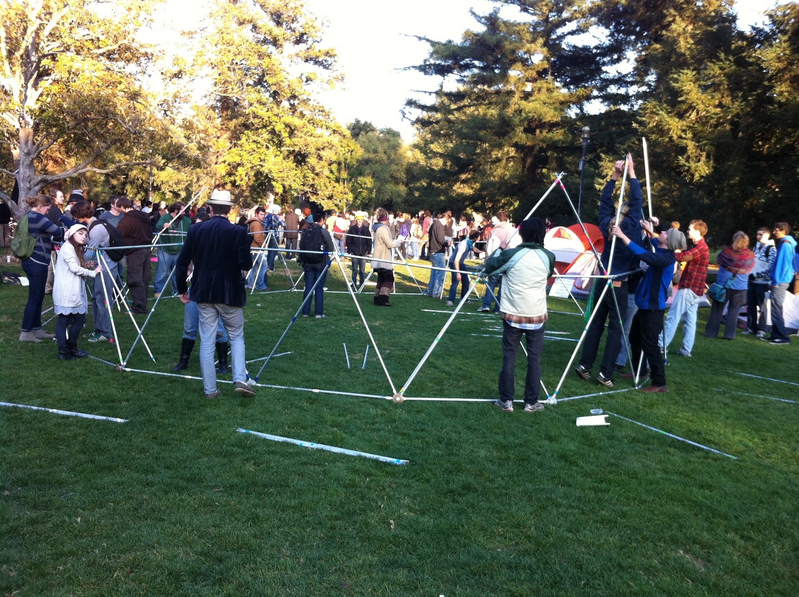 So I got up and wandered around some more and took some more pictures of the next phase of the OccupyUCDavis activities – part of which included setting up tents and a big geodesic dome.