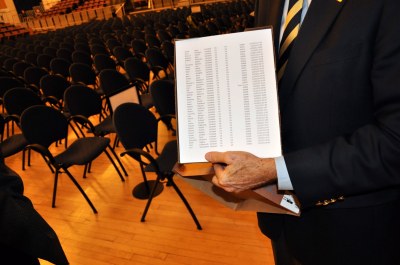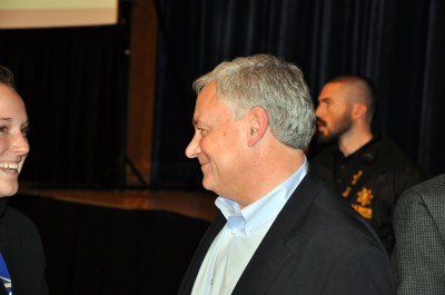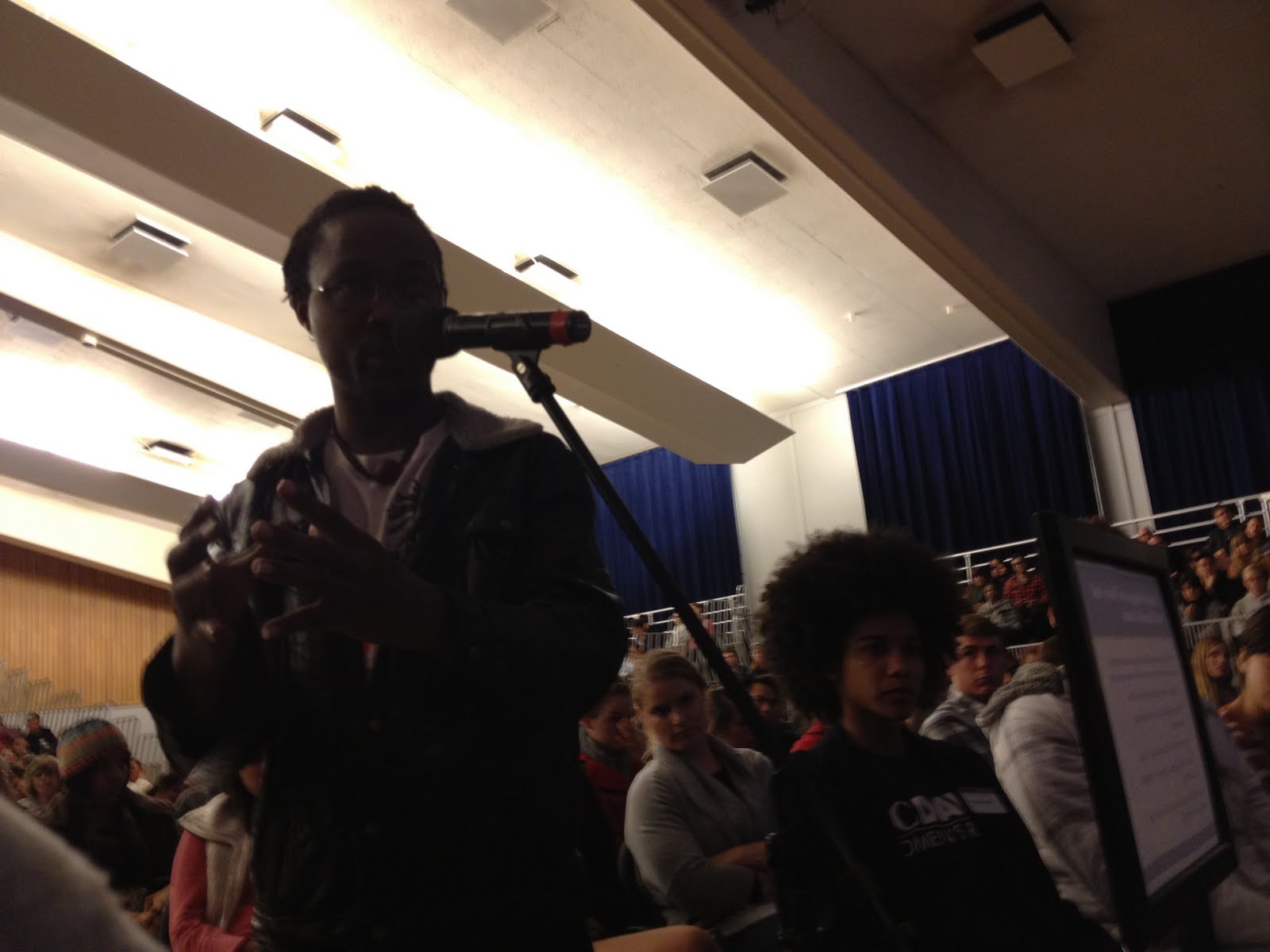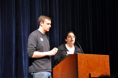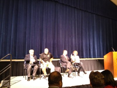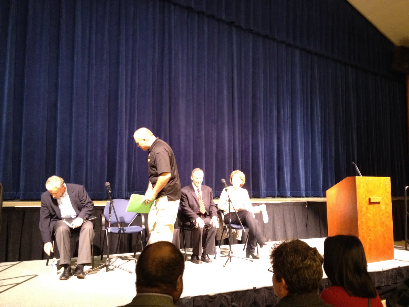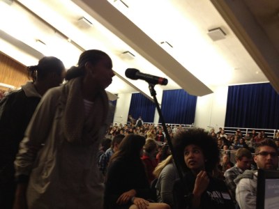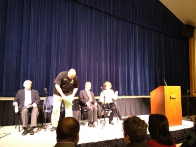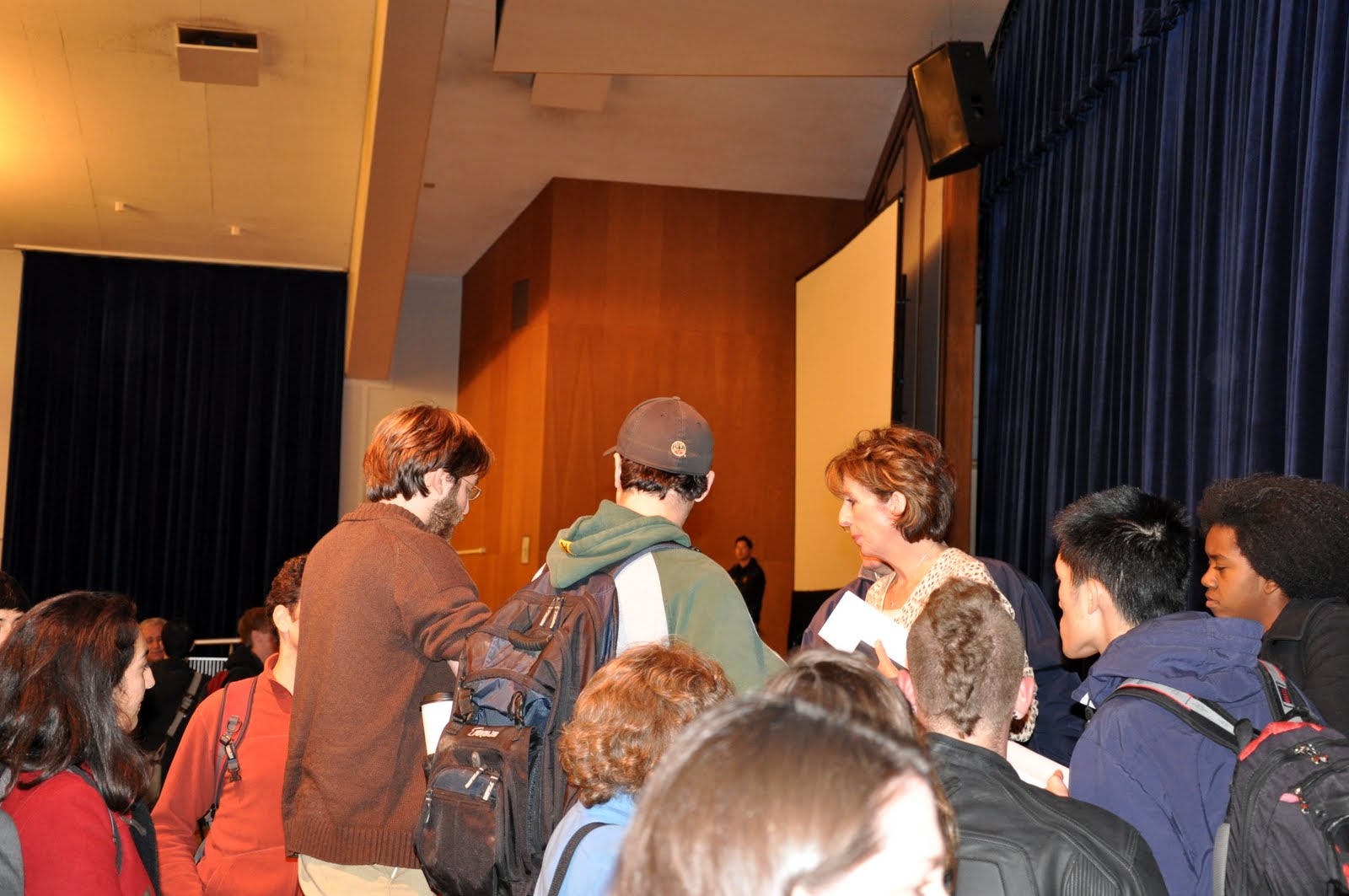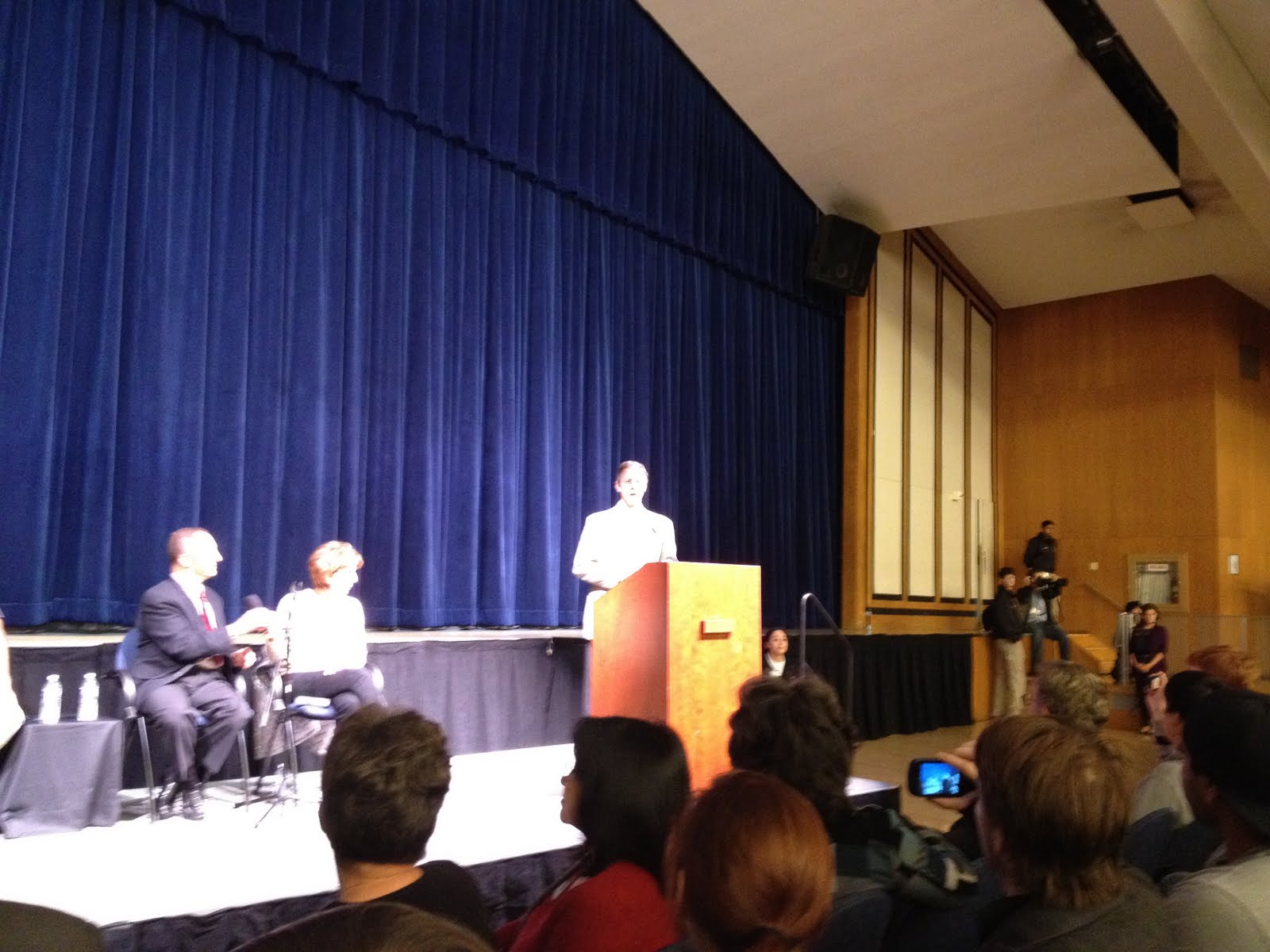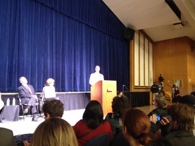 And then the students in charge of the Town Hall opened things up, set the ground rules regarding the lottery system that had been set up for questions.  And then they started