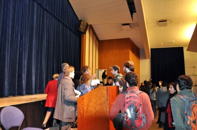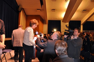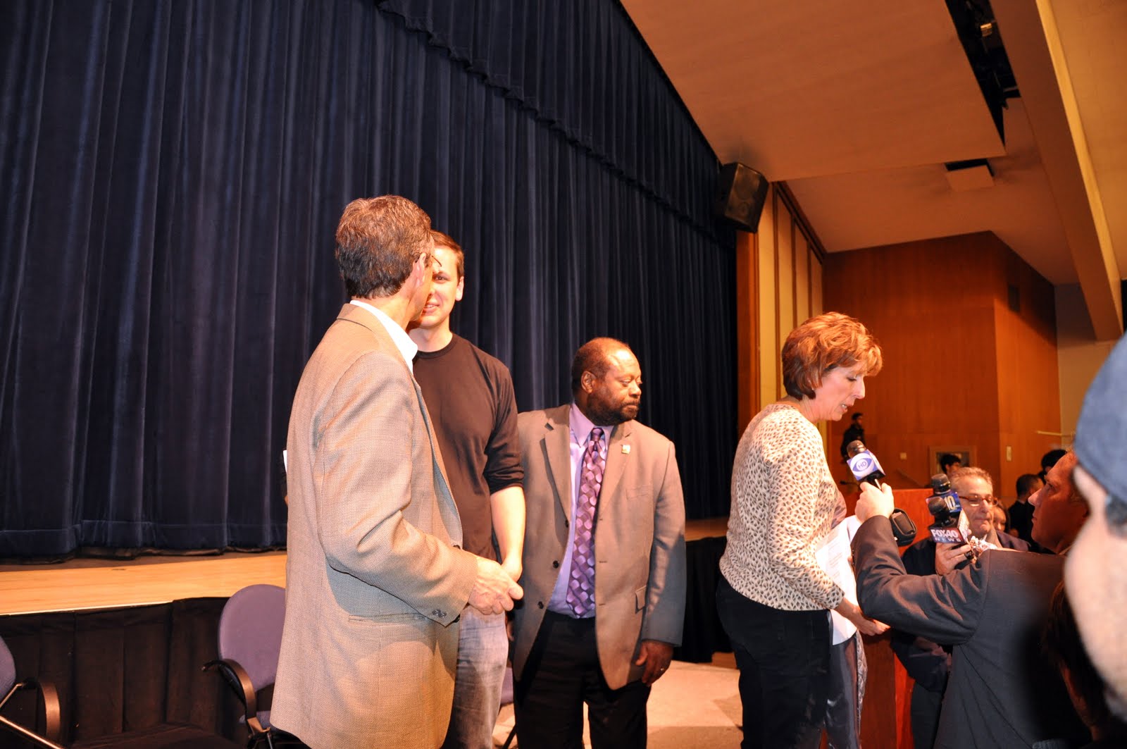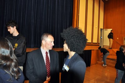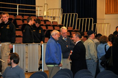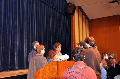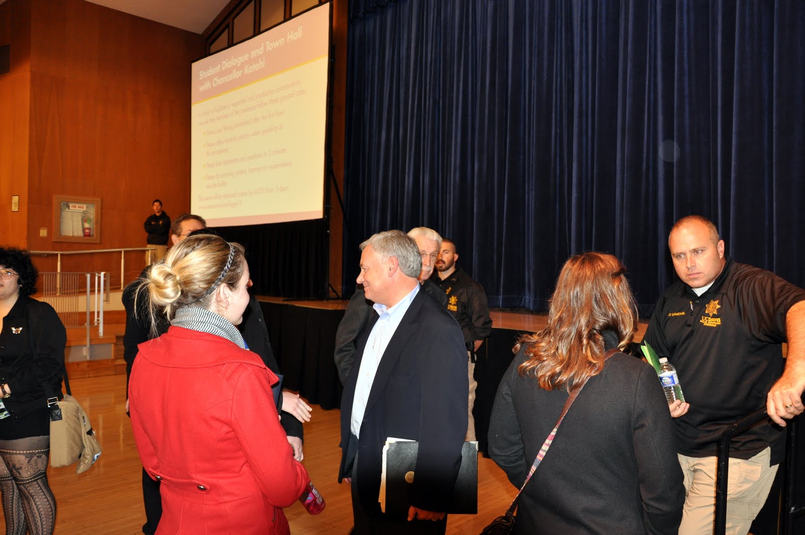 And then it was over.  And there was lots of mingling.  The tone in the mingling was very very friendly.  It seemed that Katehi and the administrators had won over much of the crowd.  I took a lot of pics of this mingling.  Here are some: