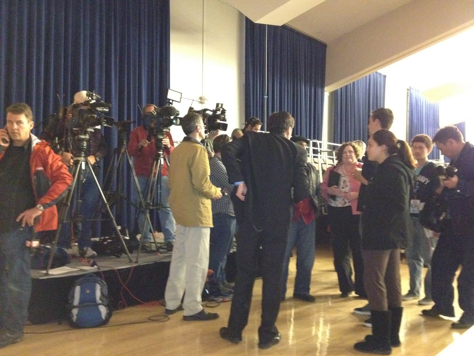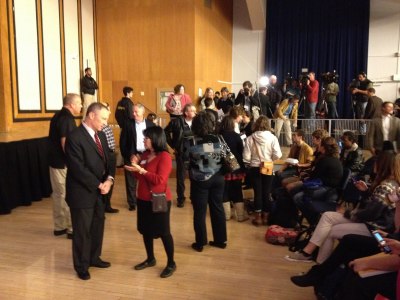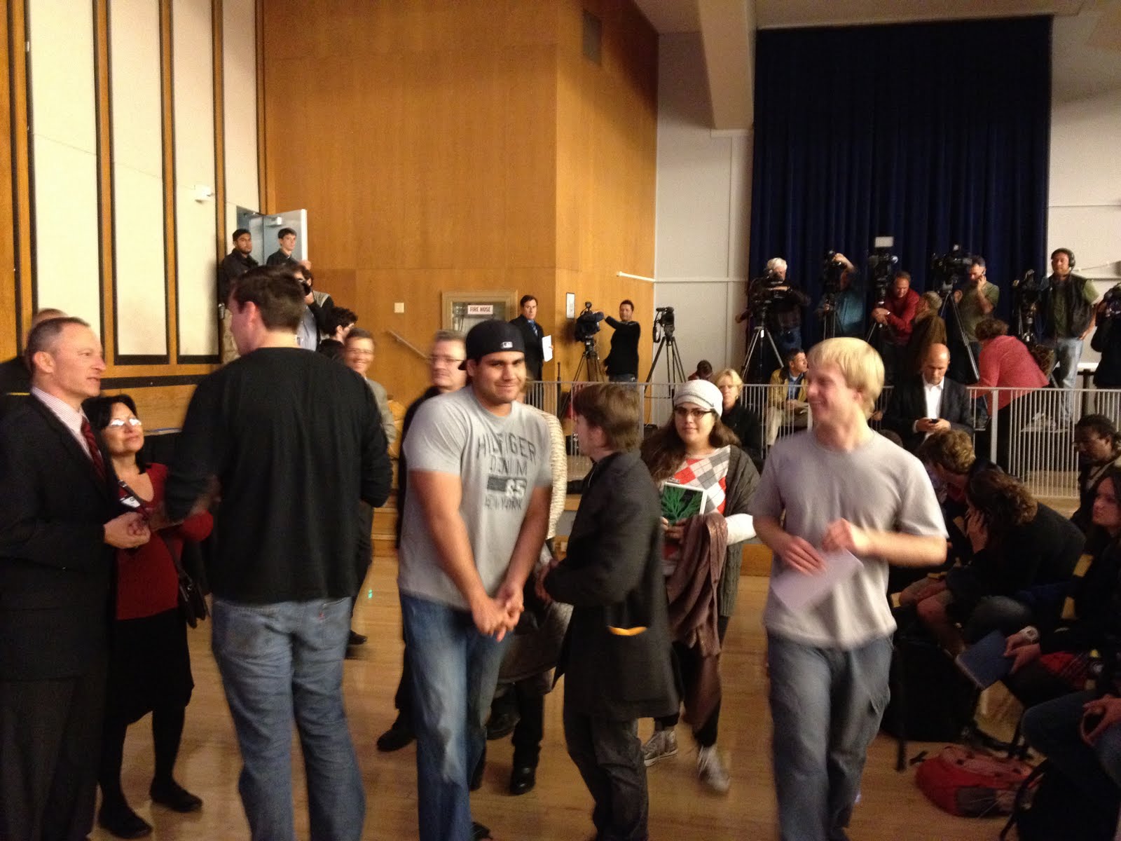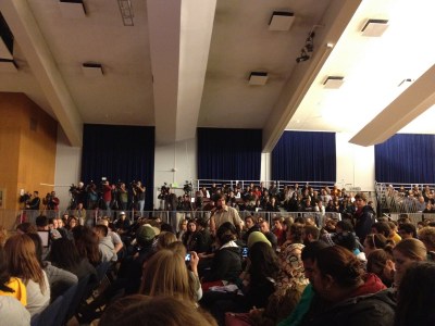 Students asks why Katehi held Saturday press conference in tiny room with big hall across the street #occupyucdavis