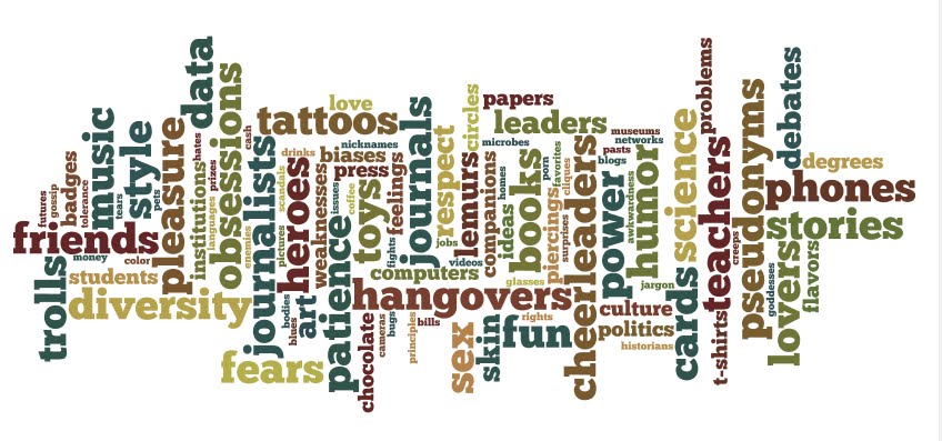 So I decided to try to come up with 100 words to complete the phrase “Scientists have …” I made a list and then gave each word a “weight” and used Wordle.Net to make a word cloud with them.
