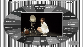 Among the concepts she showed us were devices that can do things that men do that one possibly might miss if men were gone including a greenhouse gas emitter, a toilet seat raiser, a smallerizer, a flinger, and more.  To get an idea of what these were go here and then click on the items on the circle (see screen shot below of the seat raiser).
