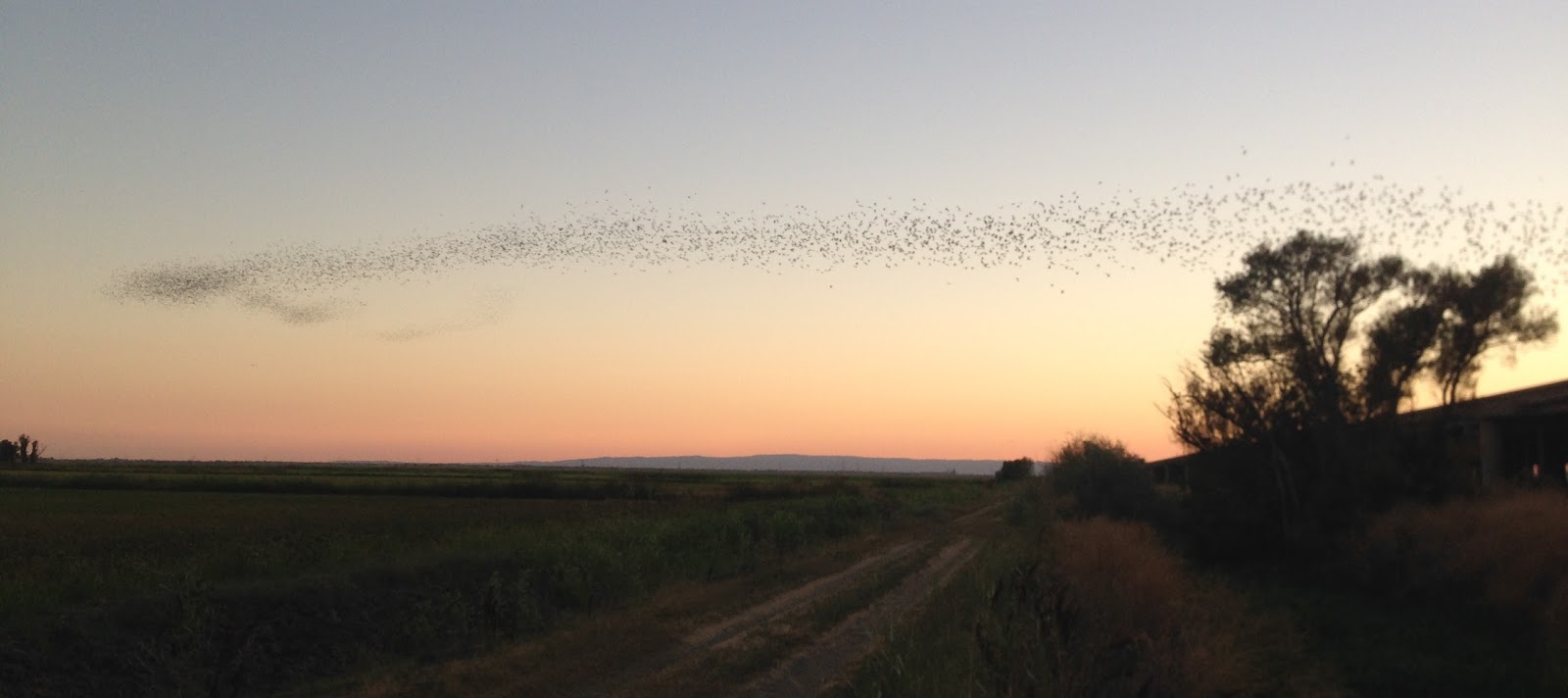 Did our second evening bat tour at the local Yolo Basin Wetlands last night. It was very nice. They start off with a lecture and bat introduction at the Visitor Center and then a convoy heading out to the wetlands and drove way way into the back (the side near Sacramento) to just next to the causeway. Then we waited until sunset and out came the bats. Thousands and thousands of them. It was cool. Here are some videos and pics. And also some responses to my Tweets about it.