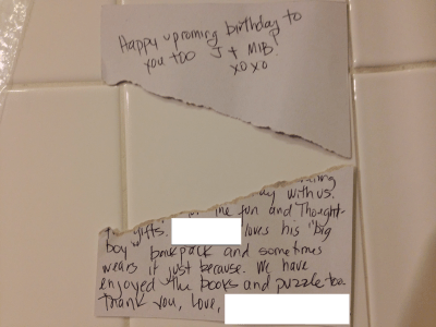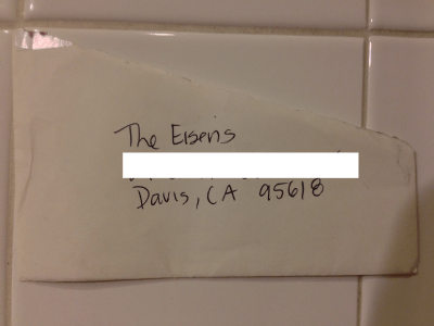 And inside of this was half of a piece of mail. A card. It felt very weird. Like someone was censoring us but most likely some machine just ate the other half.