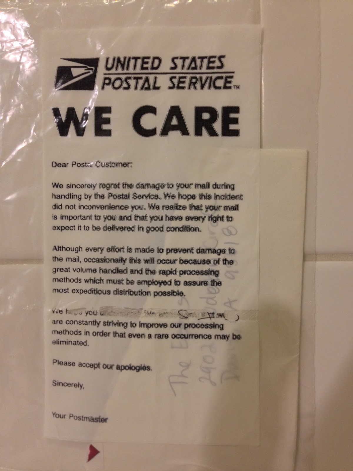 They easily could have just tossed this once it got damaged. Glad they did this. Now, mind you, I still detest all their junk mail / bulk mail policies, but this was nice ..