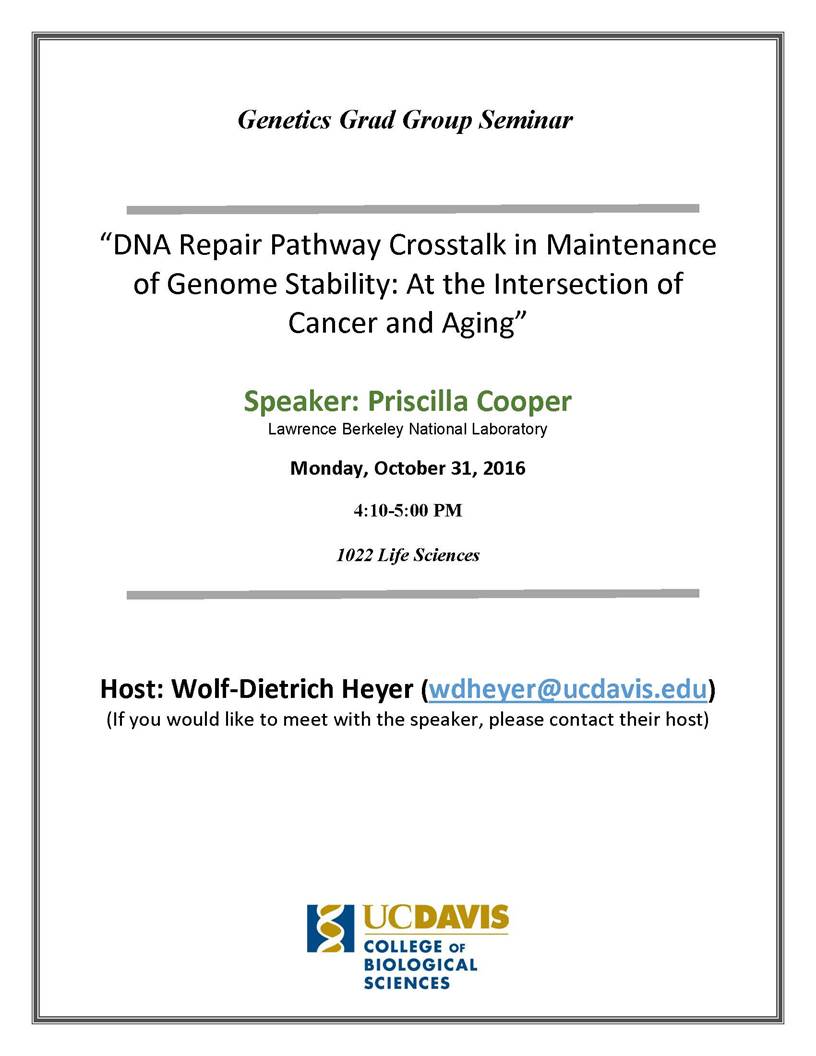 10/31 at #UCDavis – Priscilla Cooper on DNA repair pathway crosstalk in maintenance of genome stability