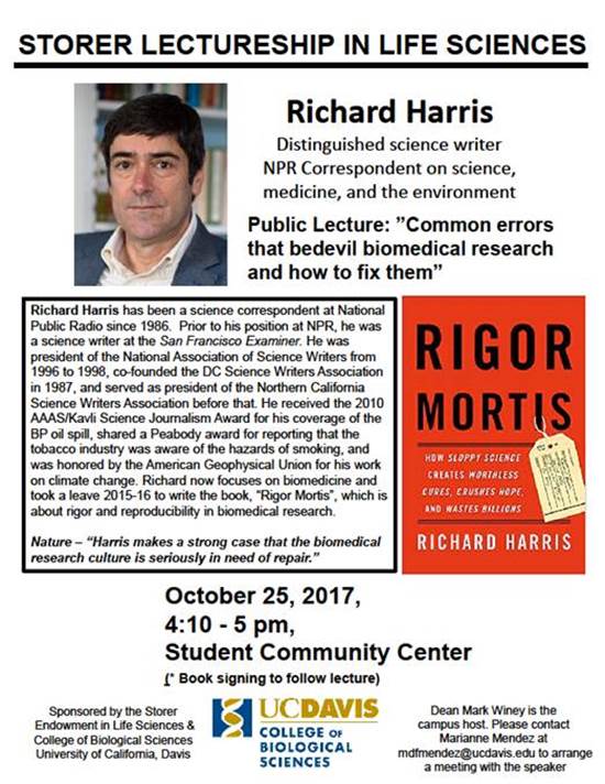 At #UCDavis today – Richard Harris @rrichardh from NPR on “Common errors that bedevil biomedical research and how to fix them”