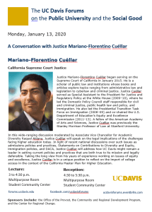 This coming Monday, January 13th, California Supreme Court Justice Mariano-Florentino Cuéllar will join The UC Davis Forums on the Public University and the Social Good in conversation regarding the legal implications of the challenges facing higher education today.
