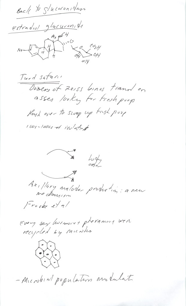 From 1980-1990, we developed and distributed GUS from E. coli as a reporter gene for plant, fungal and animal transgenesis and for microbial ecology studies. In our efforts to improve its efficacy, we explored glucuronide operon function in enteric microbes, and sought natural GUS variants in populations of soil, water, epithelial or fecal microbes that might have improved properties. We made field trips to Africa to isolate fecal and environmental microbes that were unlikely to be present due to human action and contamination. In parallel we revisited neglected literature on the function of the enzymes in vertebrate biology. In combination with stunning advances in microbial discovery and identification (e.g. David Ward’s & Steve Giovannoni’s discoveries of the ubiquity of uncultured microbes), and some neglected industrial R&D we were led to a major rethink on much of our framework around biology and evolution, science and society. This led to articulation of the hologenome theory of evolution at Cold Spring Harbor in 1994 and the extended proposal that hormone activity in metazoa and metaphyta was modulated by the dynamic population structures of associated microbes. The pleiotropic and powerful effect that hormone modulation could have to reorient and impact virtually all fitness-related traits, and indeed all reproductive activity of plants and animals, stimulated new insights into living systems. In this presentation, I’ll review the coincidences and congruences that led to the theory and some of the possible implications for science and society, in the form of some conjectures.