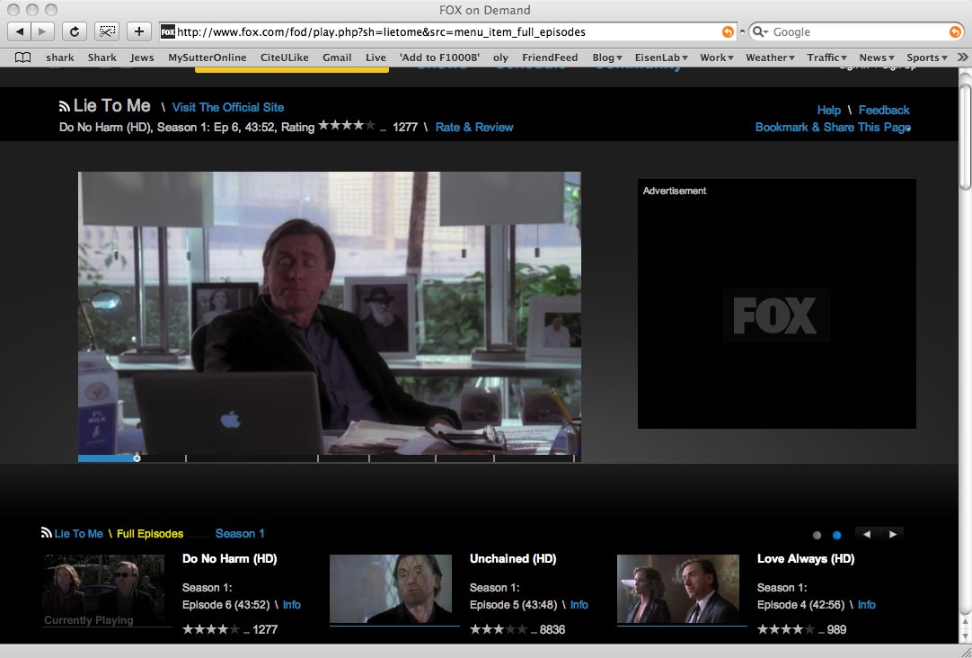Hey – that looks like good old Charlie D. in the room of the lead character in Fox’s Lie to Me. Seems likely that it is, given that the show is advised by Paul Ekman from UCSF who is into Darwin. And of course, it really looks like some of the classic pics of Charlie. Good to see Fox TV is not too sold by the lame anti-evolution rhetoric sometimes spouted on Fox News.