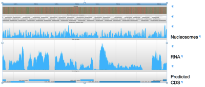 This was a pleasant surprise and one we did not take for granted given the high CG content of the genome (65%). We then turned to isolating RNA. Without polyA tails for enrichment, our first attempts at RNA-seq were 95% ribosomal. Combining partially successful double-stranded nuclease (DSN) treatment with massive sequencing depth we were able to get fairly high coverage of the transcriptome. Here’s where Ron Ammar, a graduate student supervised by me, Guri Giaever and Gary Bader stepped in and turned my laboratory adventures into a wonderful story. Ron mapped the reads from our nucleosome samples to the reference genome and found what to my eyes looked like a yeast nucleosome map only at half scale.