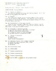 Then I took a course that changed my life. The course was taught by a PhD student at Harvard and it was a kind of supervised reading class. The course was a full year class with weekly meetings to discuss various papers and news stories and such.  The topic was “The Origin of Life: Catalysis in Evolution” and it covered things like chemical evolution, catalytic RNA, the RNA world, introns, Lamarck vs. Darwin, and more.   The course syllabus is posted below: