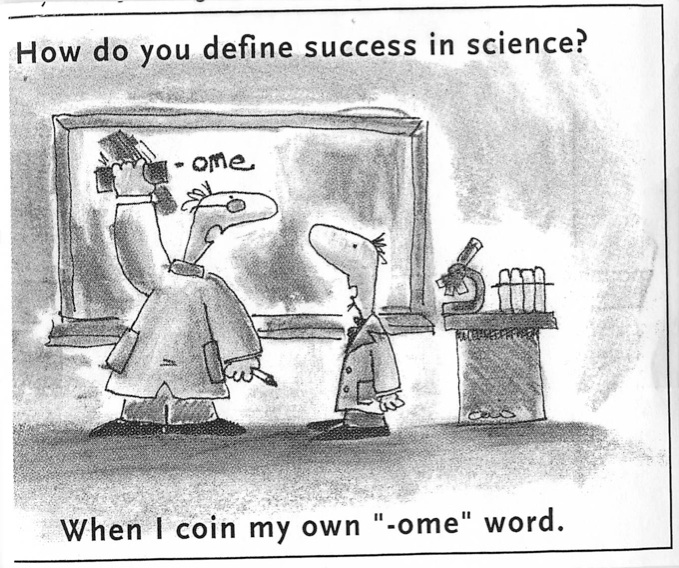 I have this cartoon of direct relevance to my crusade to end the use of badomics words. I have been trying to track where it came from for – like – ever. And though I did not want to post it without getting permission I have decided to do so to try and track it’s source. Here it is