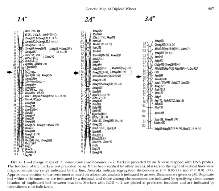Jorge Dubcovsky at UC Davis just won the Wolf Prize. What did he win it for. Wheat Maps of course. Like this one from a Genetics paper in 1996.