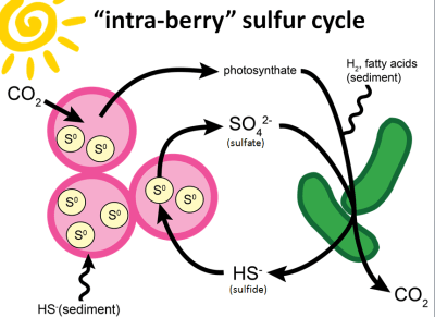 Wilbanks EG, Jaekel U, Salman V, Humphrey PT, Eisen JA, Faccioti MT, Buckley DH, Zinder SH, Druschel GK, Fike DA, Orphan VJ. (2014) “Microscale sulfur cycling in the phototrophic pink berry consortia of the Sippewissett Salt Marsh.” Environmental Microbiology, doi:10.1111/1462-2920.12388, http://dx.doi.org/10.1111/1462-2920.12388.