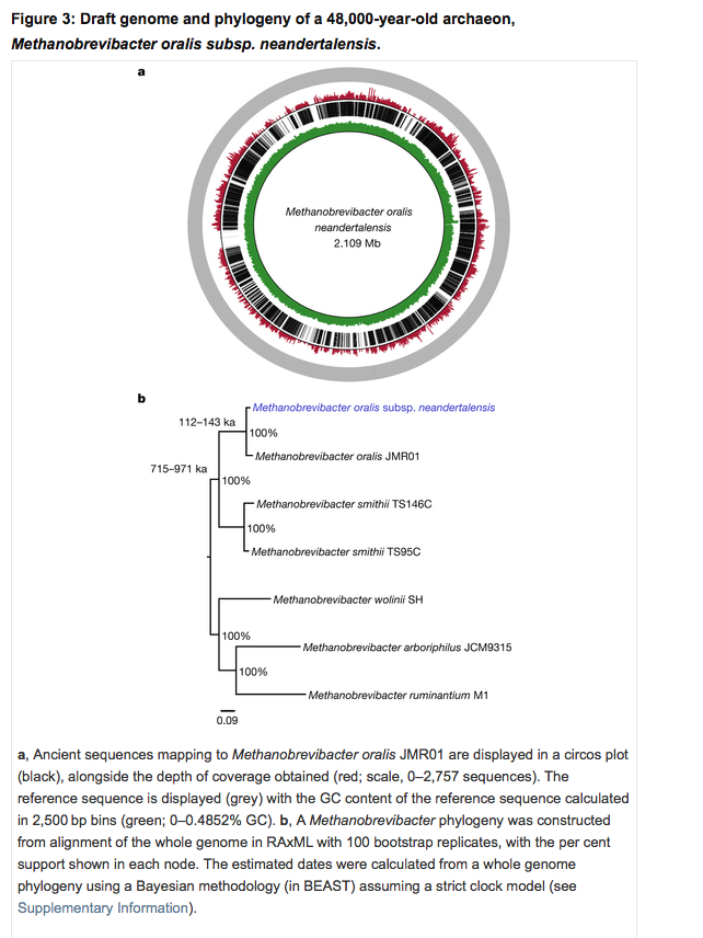 - reconstructed a genome from their samples of Methanobrevibacter oralis subsp. neandertalensis.
