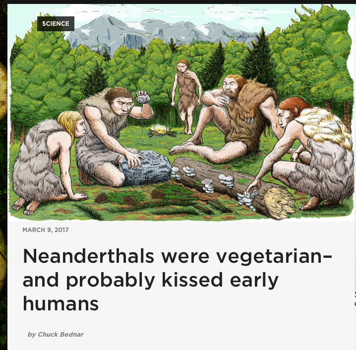 And Redorbit: Neanderthals were vegetarian– and probably kissed early humans
