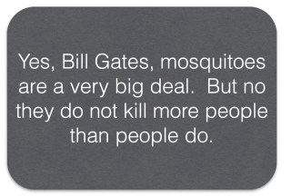Am kind of annoyed at the press coverage of this Gates – mosquitoes are the deadliest animal – concept. Here are some examples where people just ate up the idea without really asking any questions about its accuracy