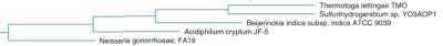 which has in one clade species that almost certainly should not group together. In particular the presence of Neisseria in this group is very strange given that all other analysis put it in the Protebacteria and the Proteobacteria are found in other parts of the tree.
