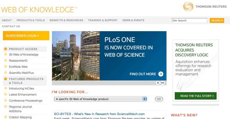 So why am I writing this – because I find it pretty funny that despite being slow to recognize PLoS One ISI is now promoting the fact that they are indexing PLoS One on their home page. See the screen capture above.