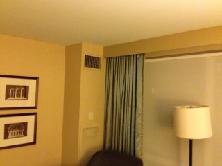 And I was off again.  Once there, I opened the door to the room and I knew before even getting into it why they did not give it to me at first.  It reeked of cigarette smoke.  Like someone had a cigarette testing party in the room.  Drowning in smoke smell.  I took a pic of the air vents to represent the smell … for what that was worth.  So I immediately went to the phone and called the desk again.