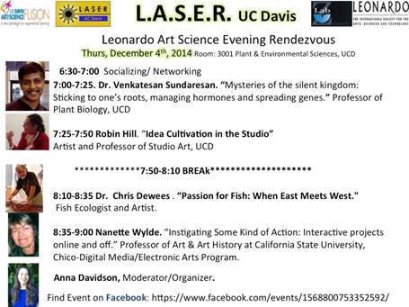 L.A.S.E.R.-UC DAVIS Continue reading “Dec 4 at #UCDavis: Leonardo Art Science Evening Rendezvous (L.A.S.E.R.)”