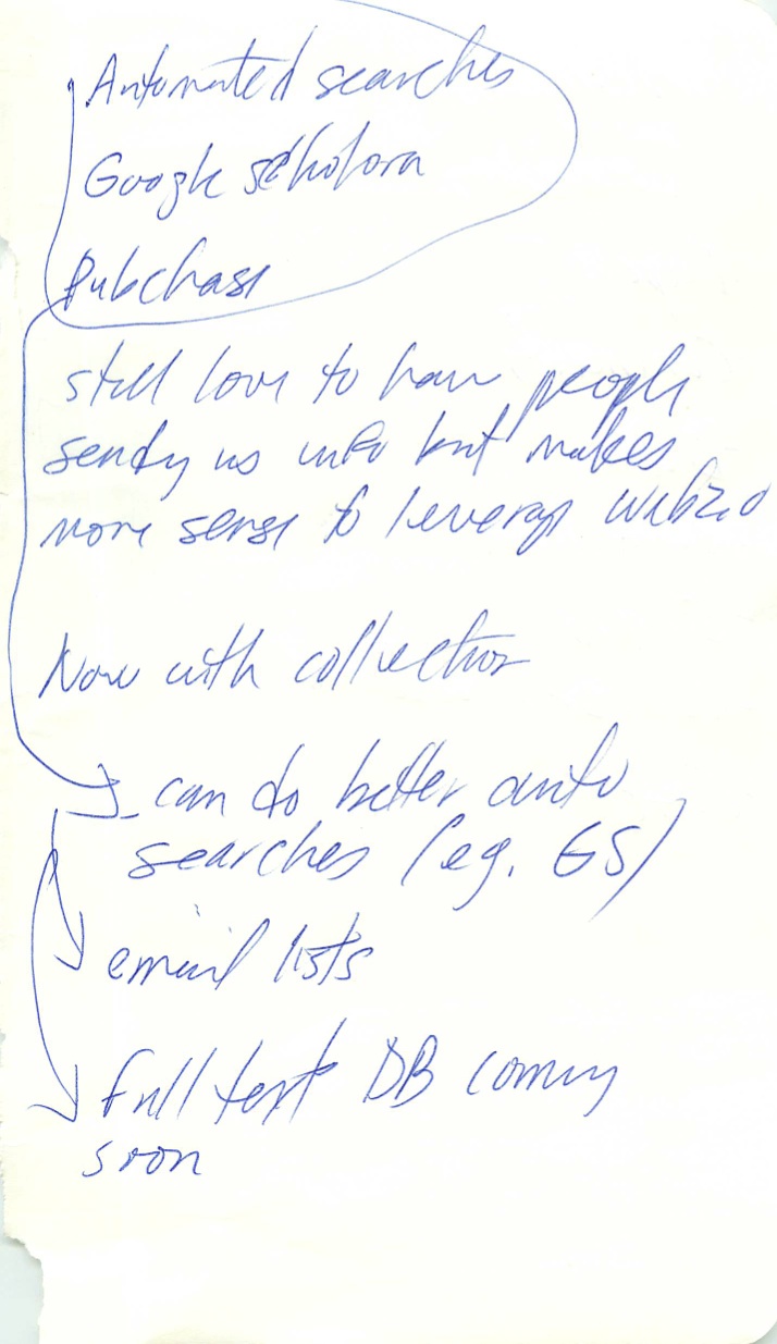 This was better. We were trying to help people in the field and help others who might be interested get connected, stay connected, and get rapid, easy access to information and tools. For example, we have been curating a reference collection for the field. And this reference collection has a lot of inputs and a lot of potential uses. In my previous talk I just listed some of this and had a screenshot of the web site. But it would be better to show this no?