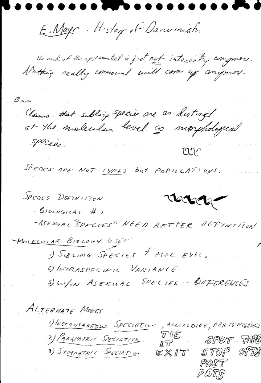 A post-doc in Phil’s lab at the time I was there, Shi-Kau (now known as Scott) Liu was working on analysis of some studies of recA mutants he had done while working in Irwin Tessman’s lab. He asked me if I could help him with some comparative analyses of RecA protein sequences from different species, in the hopes that this might help interpret his experimental data. We then downloaded and aligned all available RecA protein sequences from different species of bacteria and compared the sequence variation to the recently solved crystal structure of a form of the E. coli RecA protein. Specifically we were looking for compensatory mutations in which there was a change in one amino-acid in the region there was a correlated change in another amino-acid in the same region (these were detected using an evolutionary method called character-state reconstruction). Interestingly, in some regions of the crystal structure (e.g., the monomer-monomer contact regions) extensive compensatory mutations could be detected, suggesting that this region of the crystal was conserved between species. In other regions of the crystal (e.g., the filament-filament contact regions), no compensatory mutations could be detected suggesting either that this region of the structure was not conserved between species or that the filament contact regions were some artifact of crystallization. This was important to show since the mutations Shi-Kau was looking at were suppressors of another recA mutant (recA1202) and the suppressors we found did not make complete sense if the filament-filament contact regions of the crystal reflected perfectly what was going on in-vivo (30).