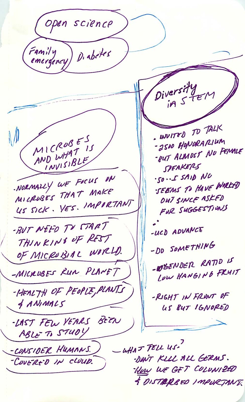 Most years I have been here, I have received a request from the organizers for suggested speakers and every once in a while I have made suggestions, some of which have even led to invitations. Recently, I had suggested a famous colleague who is also a UC Davis alum. Alas, she could not come. The organizers asked if I had any other suggestions and I sent them a list of a few candidates who are both very good, well known and do something related to microbes. The organizers really liked one of the suggestions and asked if I would be willing to invite this person.