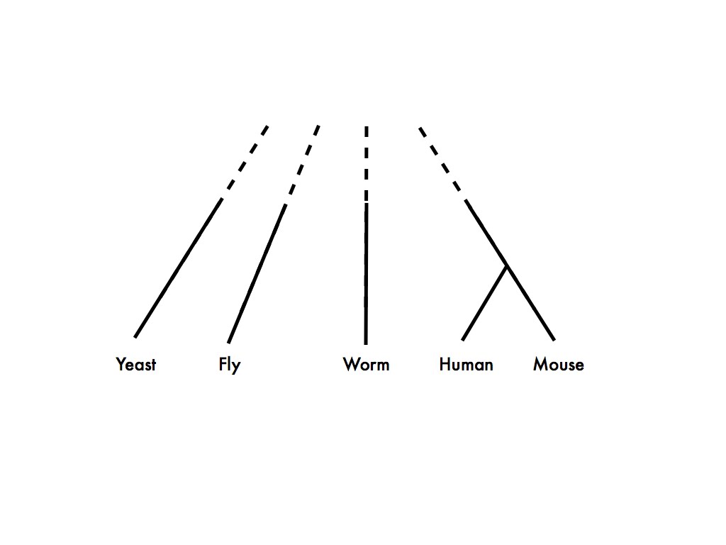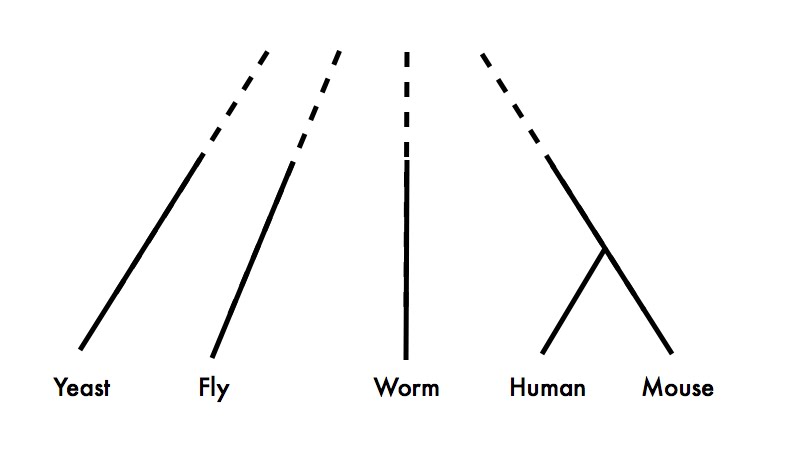 It’s obvious from this figure that if you need both 1) lots of functional data from two species, and 2) a pretty good idea of exactly what the homologous relationships are between the genes you’re studying, you’re going to have to study human and mouse.