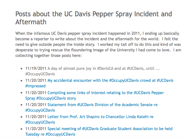 Since that time much else has happened. First, it was revealed that UC Davis had a set of contracts with outside agencies to do damage control PR of various kinds. This literally exploded into a PR nightmare for UC Davis with news coverage from across the globe and massive criticism on social media. I was one of the people throwing out negative comments. I was angry and embarrassed and wrote about this extensively.