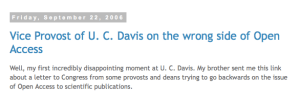 For those who know me or know about me, I assume you know I am not exactly shy about expressing my opinions on topics like behavior of academics or academic institutions. For example, just after joining UC Davis I wrote a post that was shared widely, condemning a UC Davis Vice Provost over her misuse of her position in support of Closed Access publishing: Vice Provost of U. C. Davis on the wrong side of Open Access.