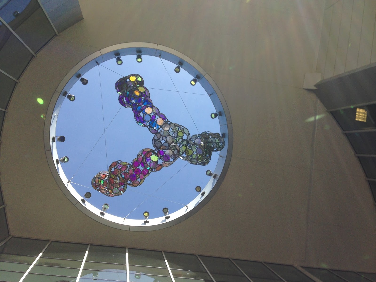 For more about this and the Artist Roger Berry see this article.  It is always inspiring and uplifting to see nice architecture and nice art in a science building.
