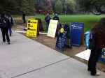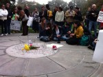 And then class ended and I rushed across the street to a meeting I had at the Student Union in the Coffee House about a project I am working on. We had our meeting and while we were there we could hear and see some hints at a commotion going on outside in the Quad but I had put down my phone and it was unclear exactly what was going on. Finally at 4:40 or so our meeting ended and I rushed out to the quad to see what was going on. Not much sign of commotion there though I did hear some people discussion “police action.” Then I ran into some of the students from my class who told me the police had pepper sprayed the protestors and that there was some serious confrontation. I took a few pictures before heading in to the next lecture for our intro bio class: