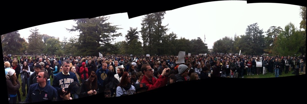 Ugggh. I don’t really know what to say here. I usually sympathize with police in some of the interactions with protestors because the police are frequently put in a really hard spot trying to maintain control, enforce laws, and deal with dangerous situations. But this just seems from every way I look at it to be completely unacceptable. UC Davis, a campus that takes pride in the “Principles of Community” has turned into this? Students camping in the quad to express their opinions about a particular issue needed to be removed why? And they needed to be pepper sprayed why? I get that cities and campuses are freaked out about what to do with all these protestors camping in places. But there must have been an alternative to this. I am a bit tired now since I tossed and turned all night in regard to what happened yesterday. I am very worried about my campus now – what happened yesterday is not a path I expected UC Davis to go down. And I have no idea where it is going to go from here.