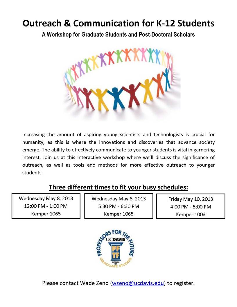 Outreach & Communication for K-12 Students Workshop for Grad Students & Postdocs Share this: Click to share on Bluesky (Opens in new window) Bluesky Click to share on Threads (Opens in new window) Threads Click to share on Mastodon (Opens in new window) Mastodon Click to email a link to a friend (Opens in new window) Email More Click to share on Reddit (Opens in new window) Reddit Share on Tumblr Click to share on WhatsApp (Opens in new window) WhatsApp Post Click to print (Opens in new window) Print PocketLike Loading...